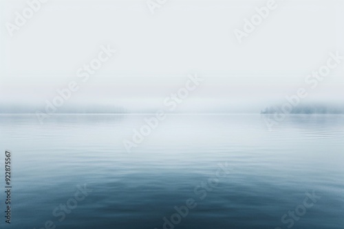 A serene landscape with calm waters and fog, creating a tranquil atmosphere.
