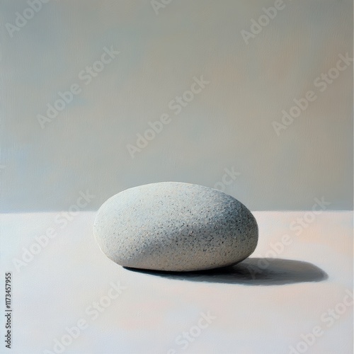 A serene minimalist image featuring a single smooth stone on a neutral background, casting soft shadows.