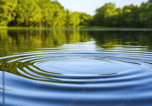 A serene natural scene featuring ripples in calm water, surrounded by lush greenery, creating a tranquil atmosphere perfect for relaxation and reflection.