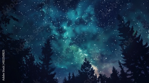A serene night sky with the Northern Lights and countless stars, creating a magical and captivating scene