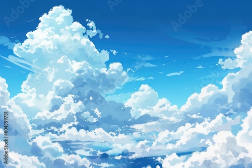 A serene painting of a blue sky with fluffy clouds. Perfect for backgrounds or nature-themed designs