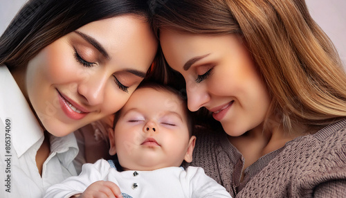 A serene portrait of parents with their happy, peaceful, and calm baby
