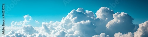 A serene sky filled with fluffy clouds against a bright blue backdrop.