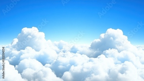 A serene sky filled with fluffy white clouds against a bright blue backdrop.