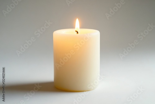 A serene white candle burns softly in a quiet, minimalistic space, casting gentle light and shadows isolated on transparent background