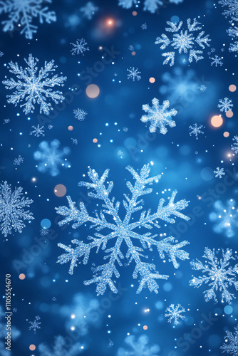 A serene winter-themed card background featuring gently falling snowflakes on a vibrant blue gradient, perfect for holiday greetings, winter events, or seasonal promotions.
