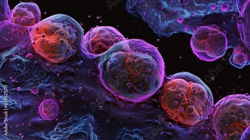 A series of dividing hematopoietic stem cells each with distinct stages of maturation