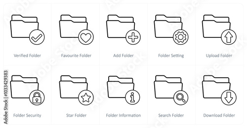 A set of 10 folder icons as verified folder, favorite folder, add folder