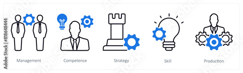 A set of 5 Business and Office icons as management, competence, strategy