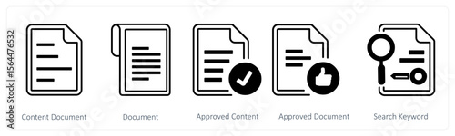 A set of 5 mix icons as content document, document approved, approved document
