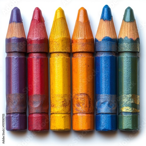 A set of colorful crayons arranged in a row isolat 739 thread, sewing, color, textile, colorful, cotton, fabric, colors, crayons, sew, spool, red, texture, pink, art, pattern, material, yellow, books