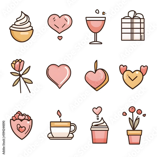 A set of icons a minimalist valentine days