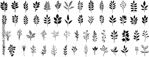 a set of minimalist leaflets. Black and white plants.