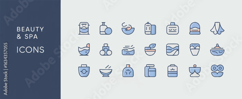 A set of minimalist spa and beauty icons arranged in a grid format on a white background.