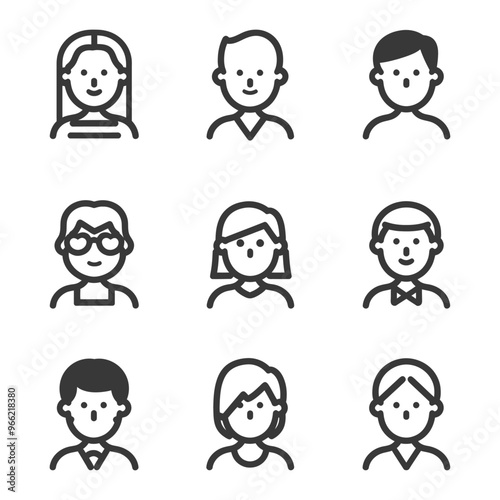 A Set of Nine Simple Line Drawings Depicting Human Faces