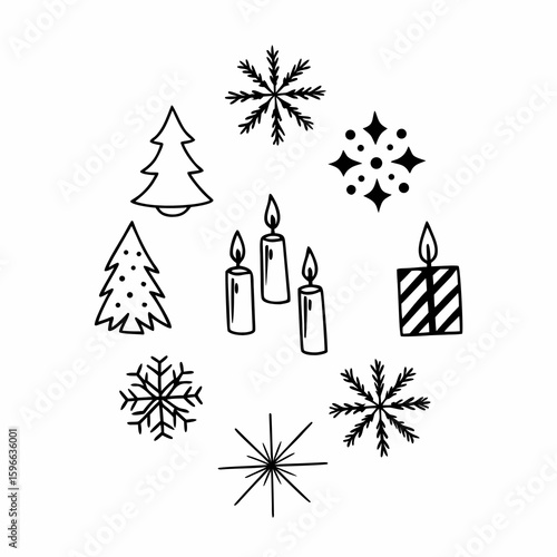A set of vector Christmas icons for winter holiday decoration featuring Christmas tree, snowflake, and star illustrations