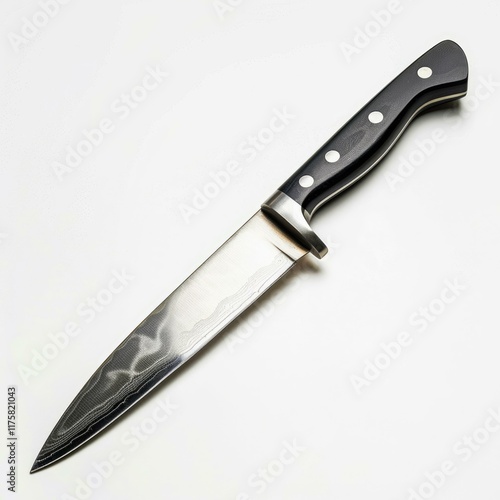 A sharp, stainless steel chef's knife with a black handle, ideal for various kitchen tasks.