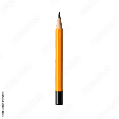 A Sharp Yellow Wooden Pencil With a Black Eraser and Graphite Tip on a White Background