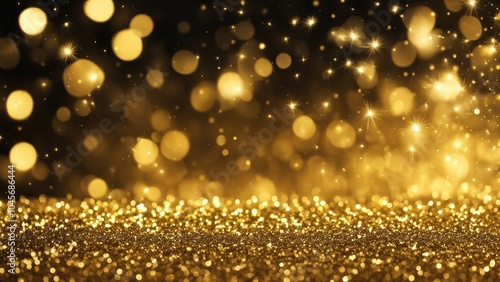 A shimmering background of golden bokeh and glitter, ideal for celebrations and elegance.