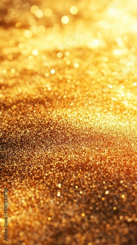 A shimmering golden texture, resembling sand or glitter, creating a warm, inviting atmosphere.