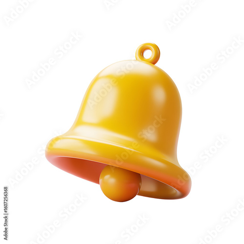 A shiny golden yellow Christmas bell with a red ribbon bow, isolated on a white background, perfect for holiday decoration