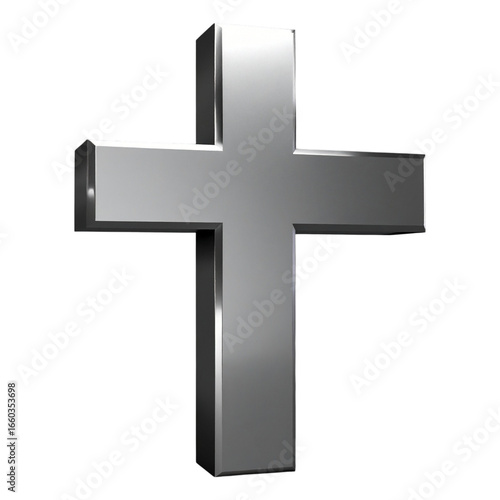 A Shiny Silver Cross, 3D Render Isolated on Transparent Background PNG