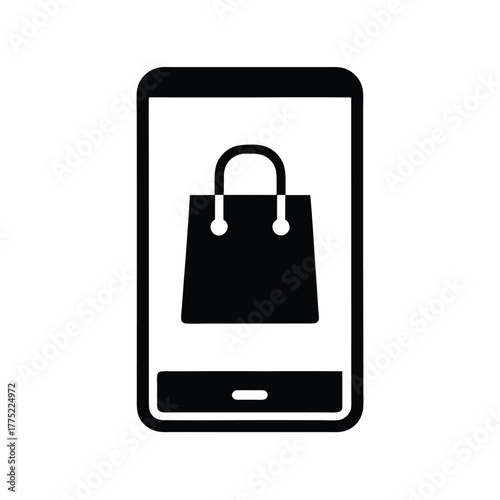 A shopping bag icon is displayed prominently on the screen of a smartphone