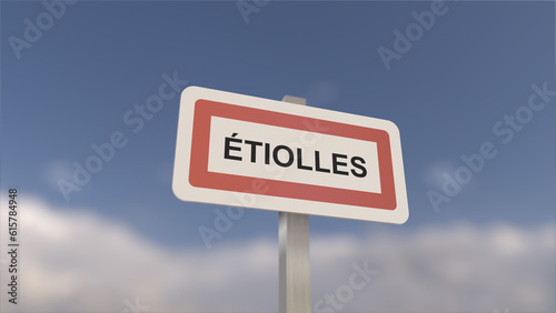 A sign at Étiolles town entrance, sign of the city of Étiolles. Entrance to the municipality.