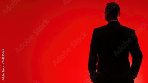 A silhouette of a businessman against a red background, symbolizing power and determination