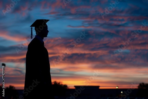 A silhouette of a graduate standing tall with a sense of accomplishment and pride.