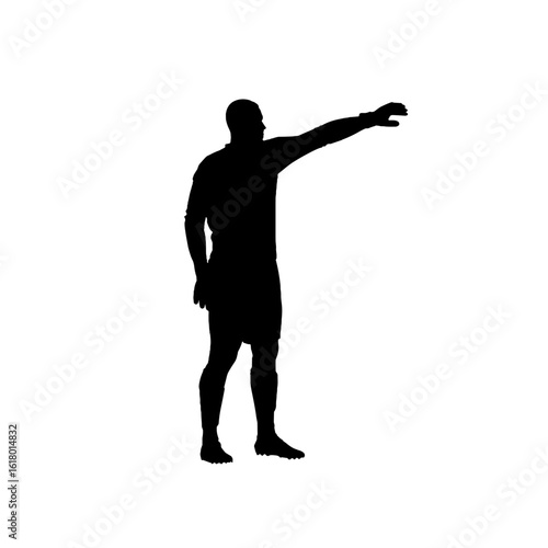 A silhouette of a person gesturing, possibly indicating something.