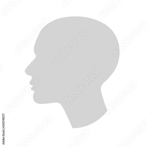 A silhouette of an anonymous human head in profile. Vector illustration of abstract concept of social element. Suitable for avatar, web design. Isolated on a white background.