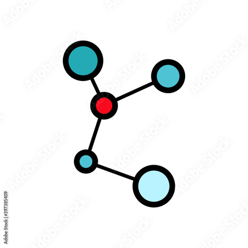 A simple abstract scientific chemical diagram of the structure of a molecule with atoms and molecular bonds of valencies, a simple icon on a white background. Vector illustration