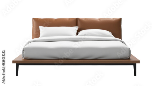 A simple bedroom scene with a brown headboard and white pillows