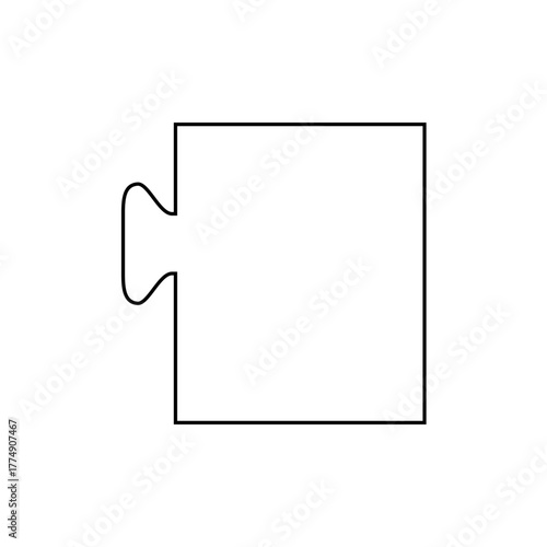 A simple black and white outline drawing of a single puzzle piece with a connector on the left side view