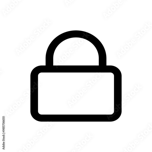 A simple black outline of a padlock with rounded edges and a clear white center on a white background