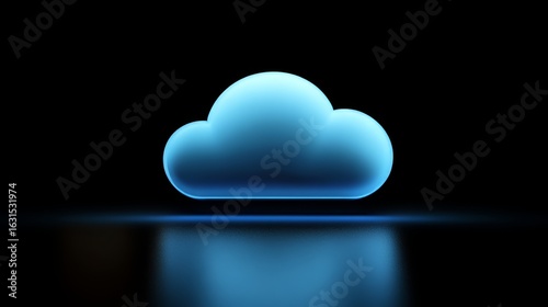 A simple cloud icon glowing in blue light