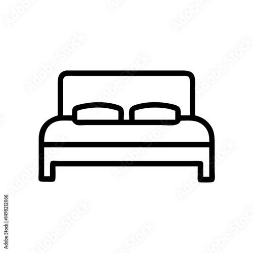 A simple graphic depiction of a bed with two pillows, presented in a minimalist outline style design