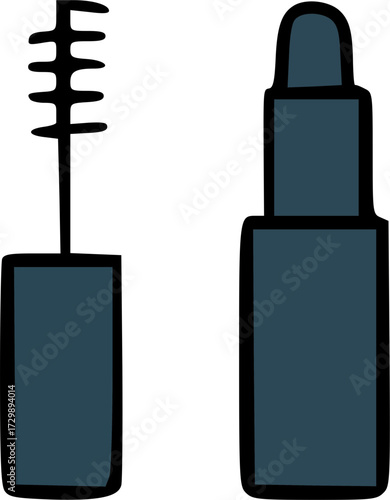 A simple, hand-drawn illustration of a mascara wand and a lipstick tube, common beauty products.
