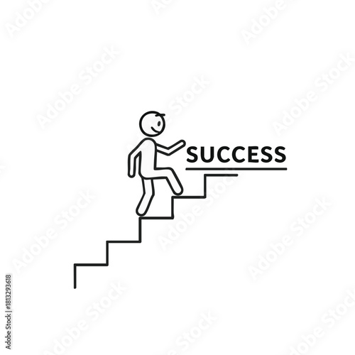 A simple illustration depicts a stick figure climbing stairs towards the word success, symbolizing achievement and progress in life's journey.