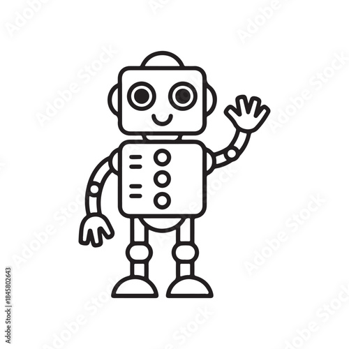 a simple line drawing depicts a friendly robot waving showcasing a classic and charming mechanical design