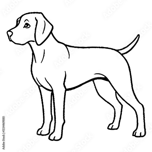a simple line drawing of a dog standing in profile, with a clean and elegant outline. This artwork captures the essence of canine grace