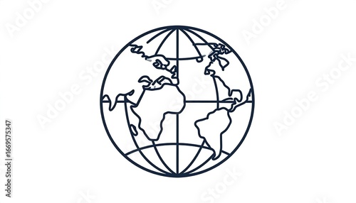 A simple, line-drawn representation of a globe, showcasing the continents and their relative positions.