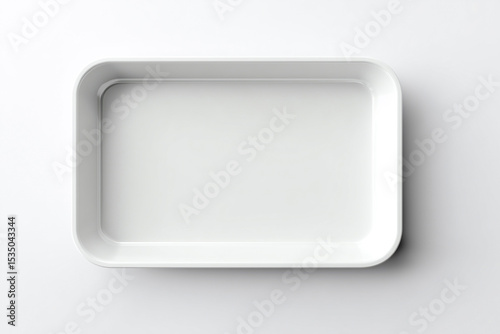 A simple white rectangular tray isolated on a white background, ideal for serving or displaying various foods.