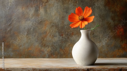 A simple yet elegant still life image of a single flower in a white vase