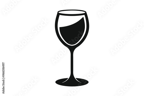 A single, black wineglass stands elegantly with dark liquid partially filling it