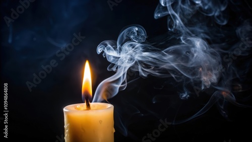 A Single Candle Burning with Smoke Rising on a Black Background