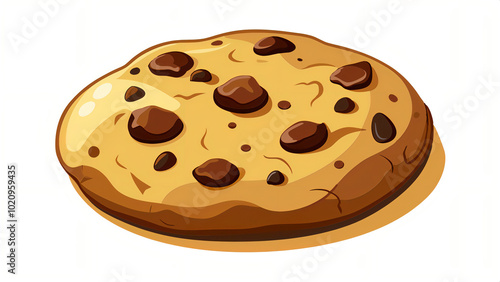 A single, freshly baked chocolate chip cookie, sitting on a creamy white background, highlighting its warmth and inviting texture.