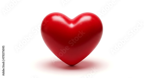 A single glossy red heart shaped object with a smooth surface isolated on white background