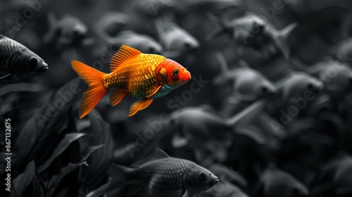 A Single Golden Fish Among a School of Black Fish